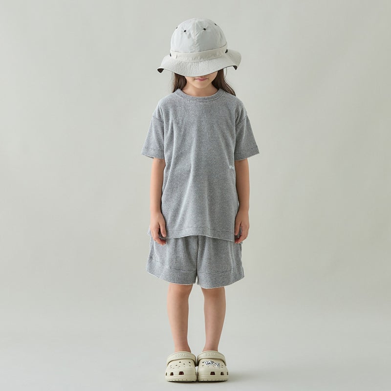 ボーダー柄パイルのTシャツ。