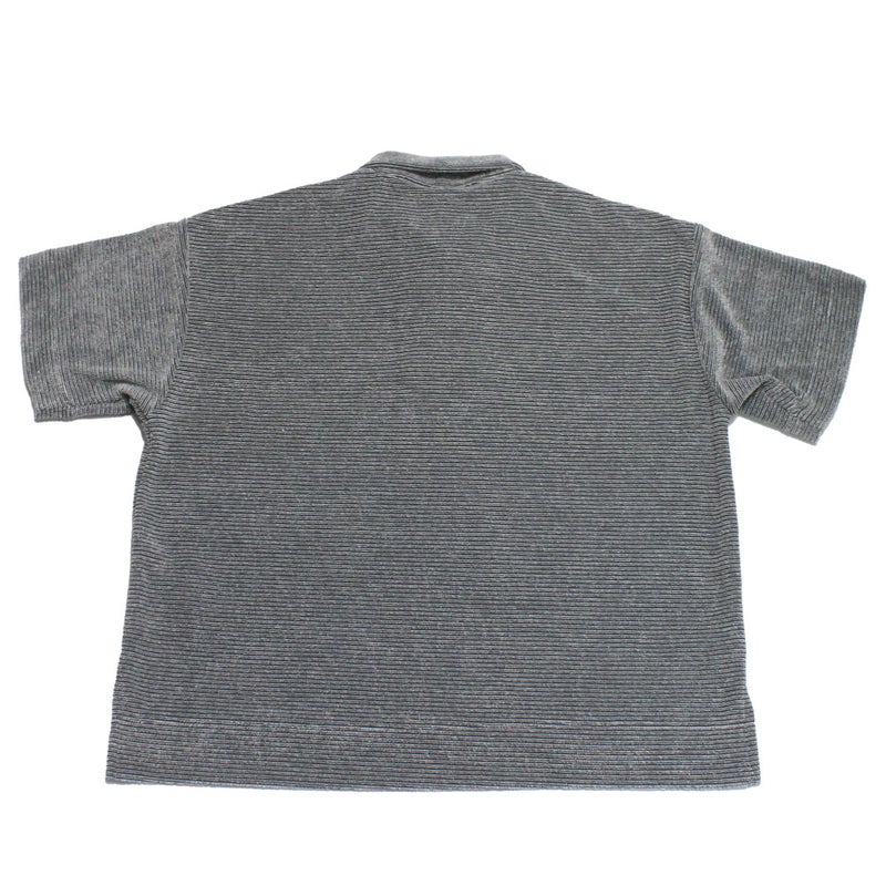 ボーダー柄パイルのポロシャツ。