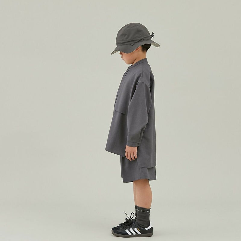 麻の様な風合いのバンドカラーシャツです。