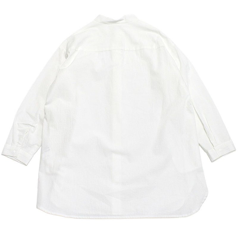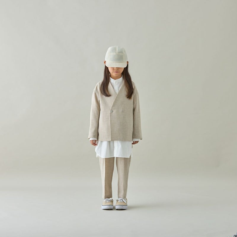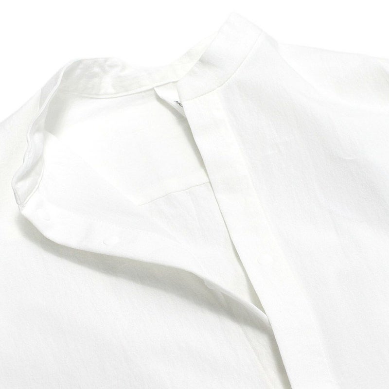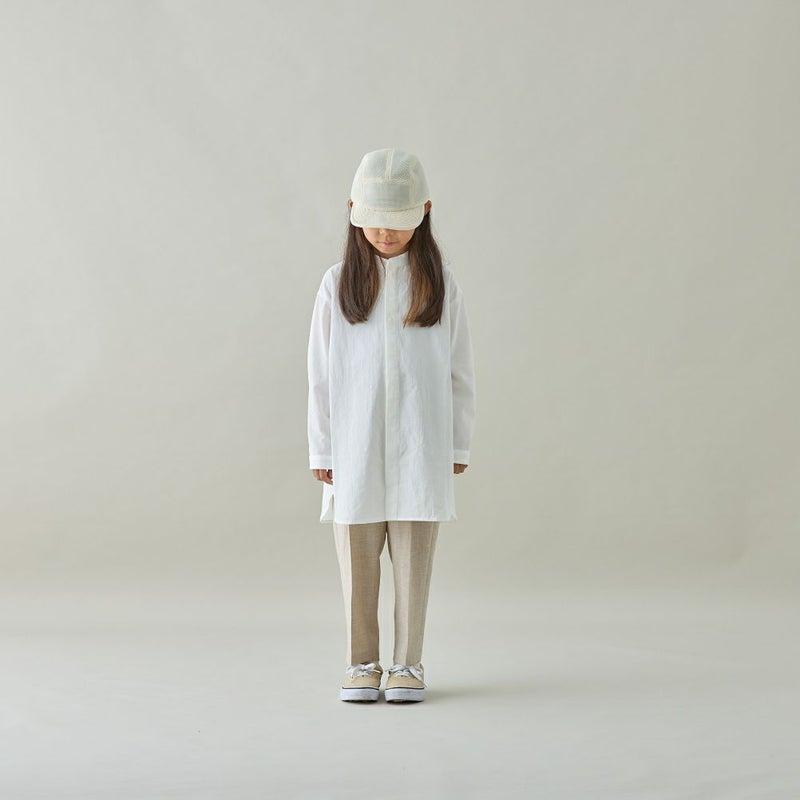 ナチュラルな素材感で、バンドカラーで比翼仕立てのスッキリとしたデザインです。