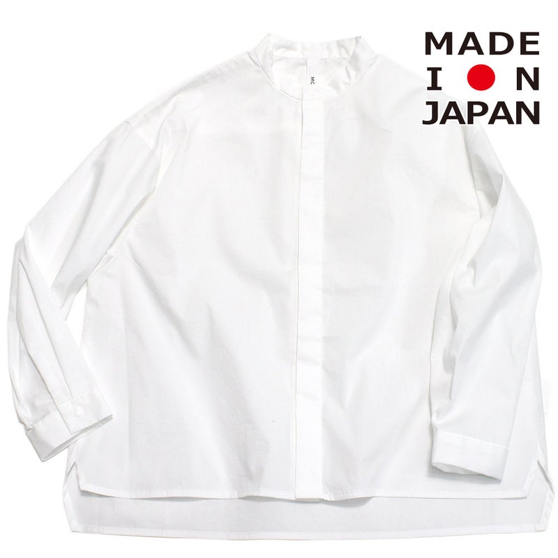 比翼仕立てのバンドカラーシャツ。
