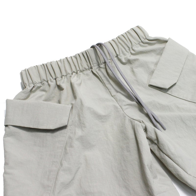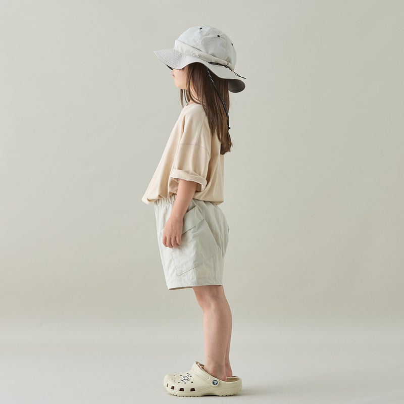 サイドのフラップポケットが特徴的なやや短め丈のショートパンツ。