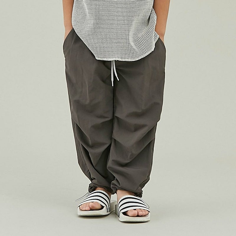 シンプルでスッキリとしたデザインの、ナイロン素材のロングパンツ。