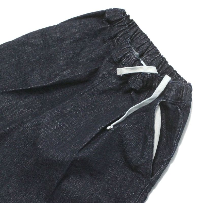 適度にワイドで、膝下位のミディ丈が新鮮なデニムパンツ。