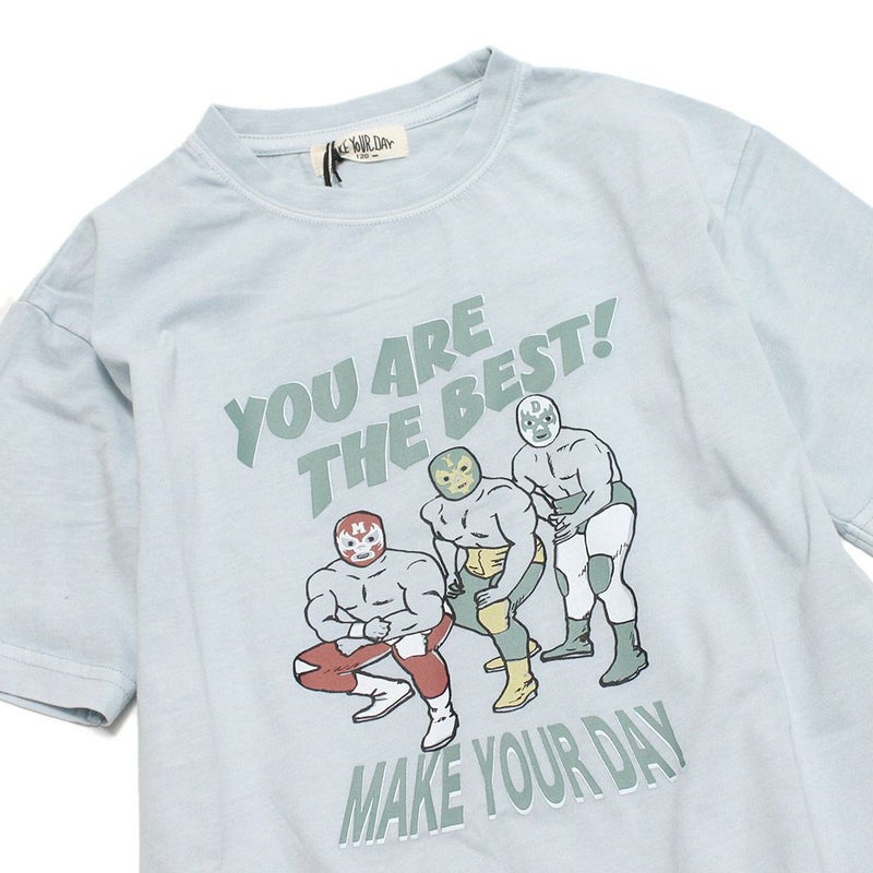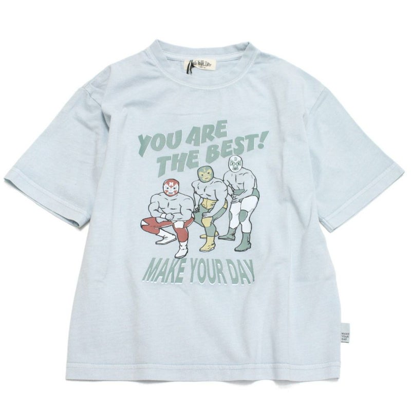 5. [メイクユアデイ] レトロマスクマンTシャツ サックス(SS)