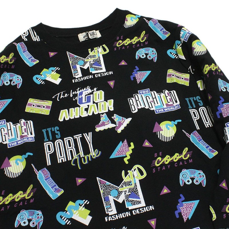 ポップでカラフルな総柄デザインがインパクト抜群。