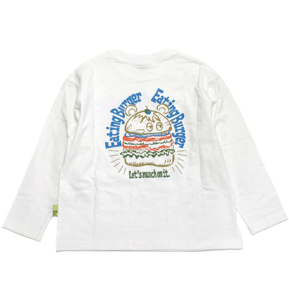 ハンバーガーをモチーフにしたポップなバックプリントが目を惹くロンT。