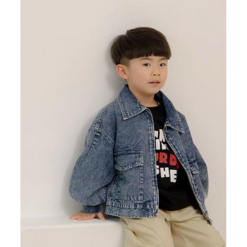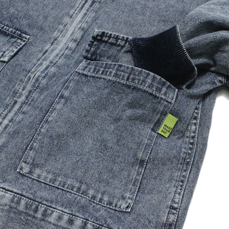 加工感のあるデニムを使用したブルゾン。