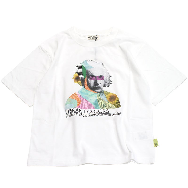 偉人の肖像画をコラージュアートでカラフルに仕上げた半袖Tシャツ。