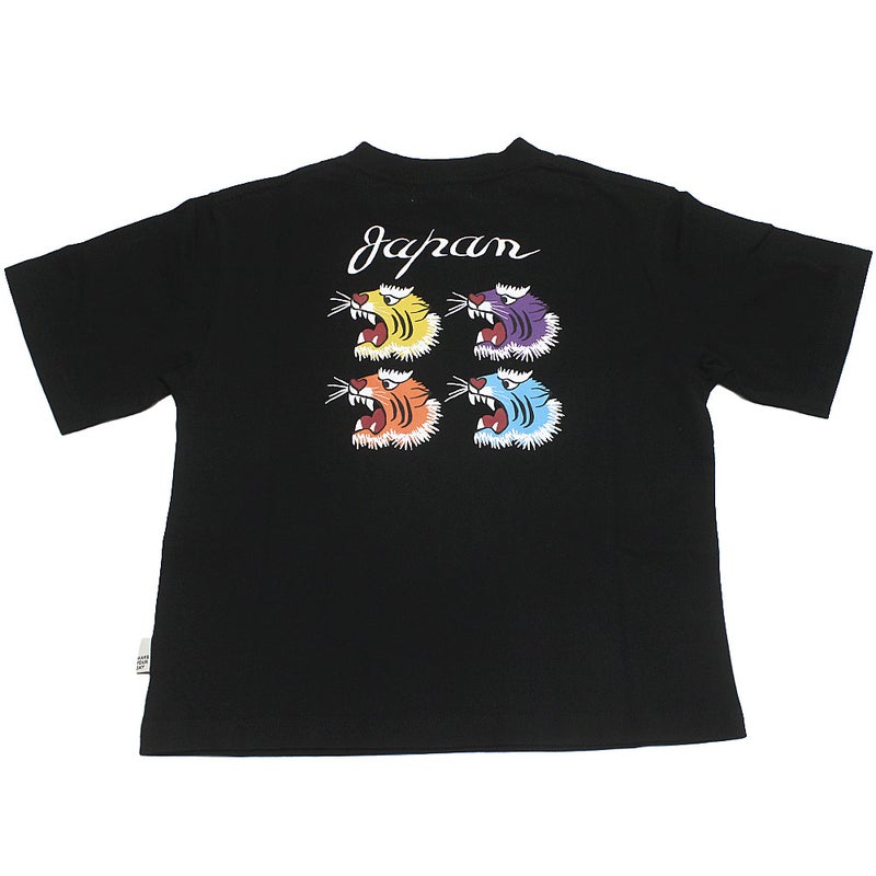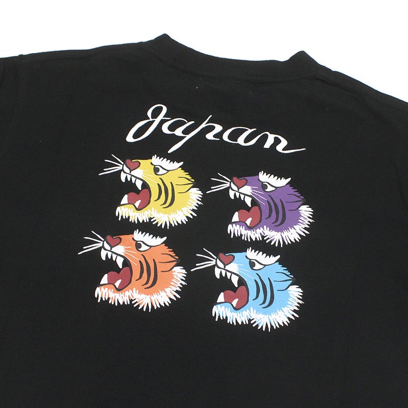 カラフルなトラをバックにプリントしたTシャツ。