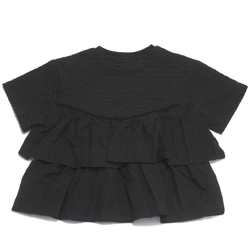 ボリュームのあるティアードフリル半袖Tシャツ。