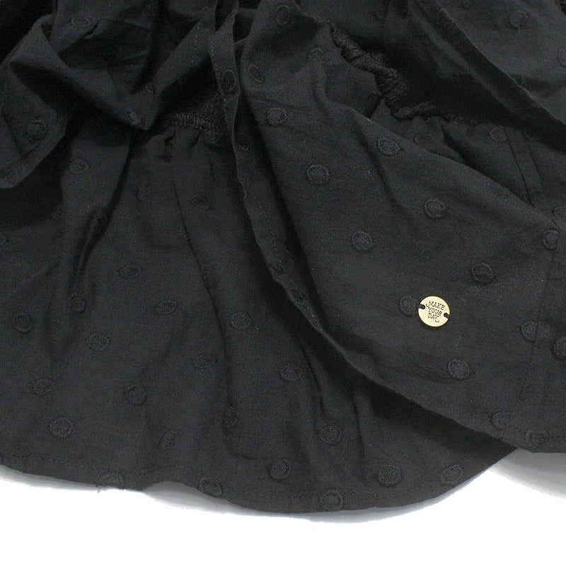 袖と上身頃はジャガード生地、フリル部分はジャガードのドット柄。