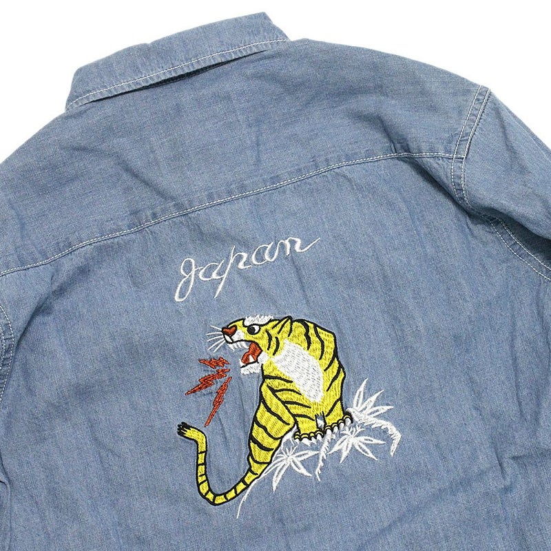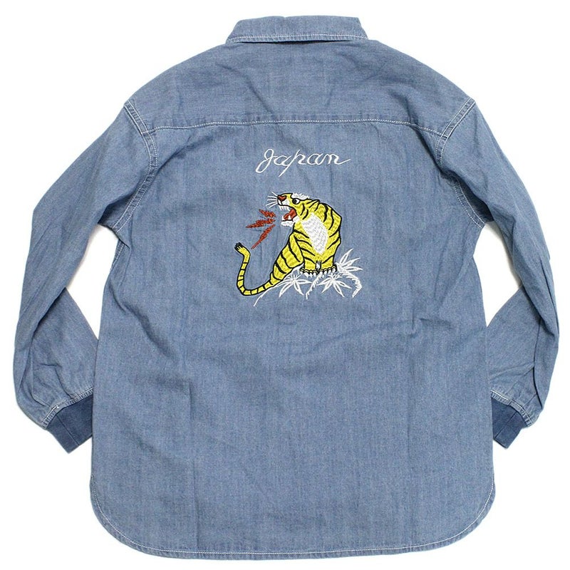 バックのトラ刺繍が目を惹くミリタリーシャツです。