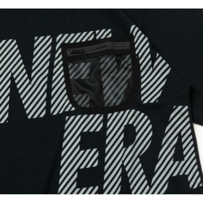 フロントにブランドロゴ、左胸にメッシュポケットを配置。