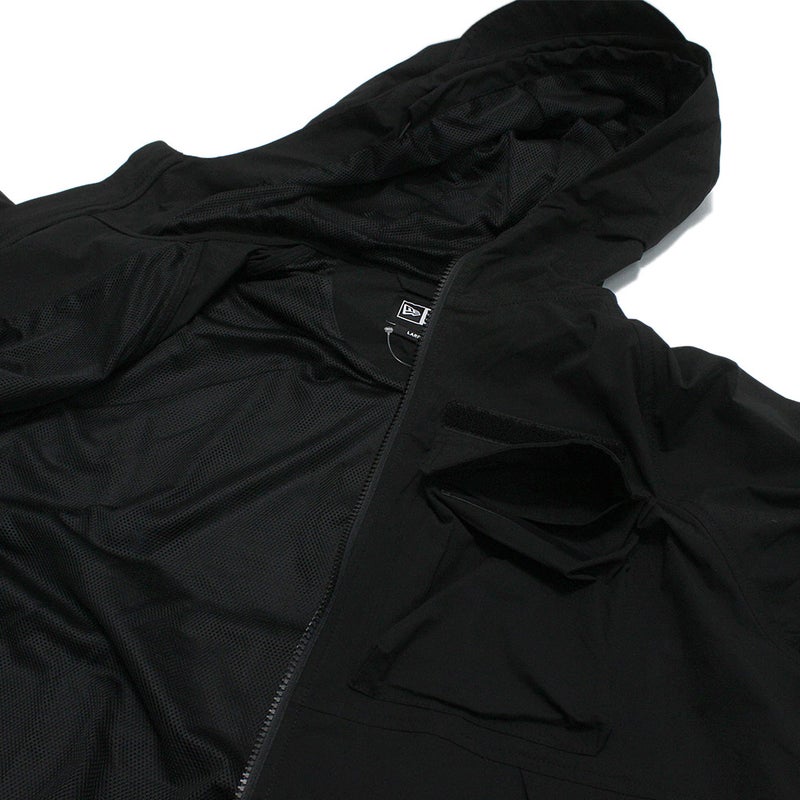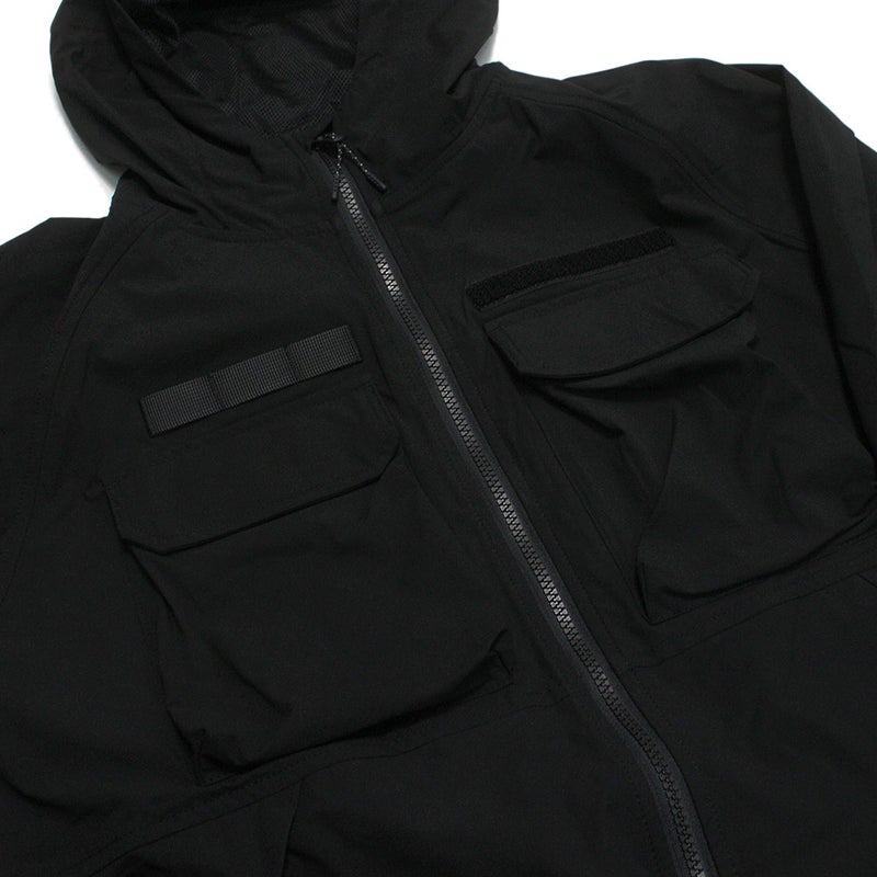 両胸にアウトポケット、両脇にファスナー付きポケットを配置し、高い収納力を確保しています。