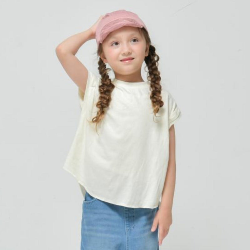 袖をロールアップしたようなフレンチスリーブ仕様のTシャツ。