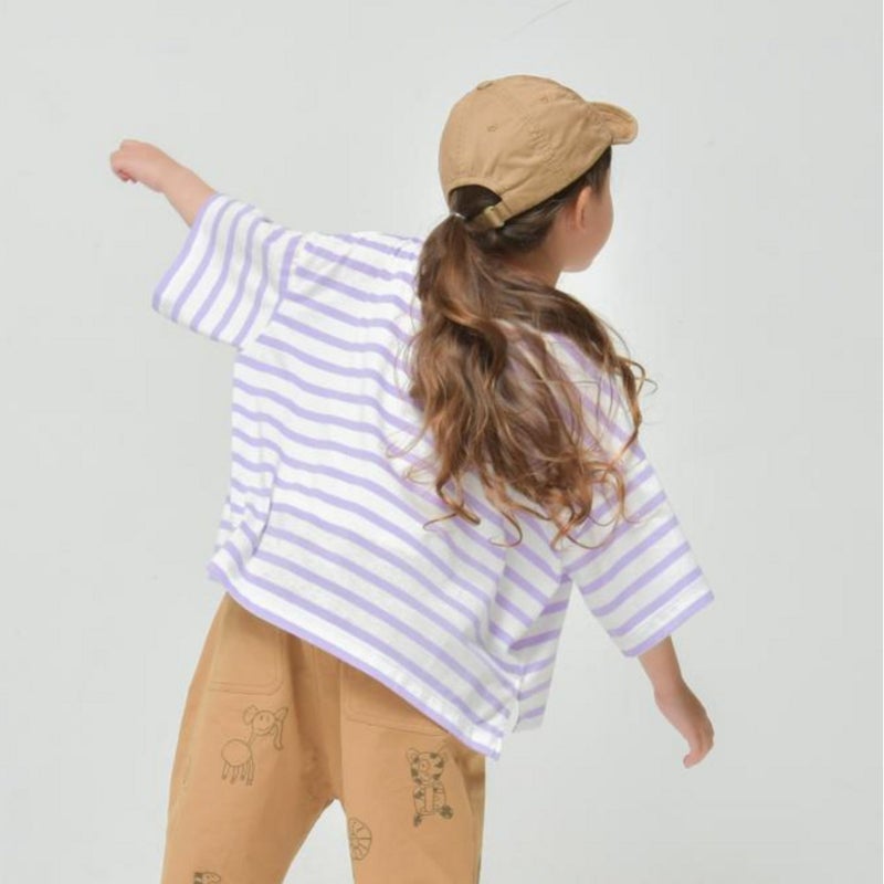 [ニードルワークス] T/C天竺BIGロゴTシャツ ペールライラックボーダー