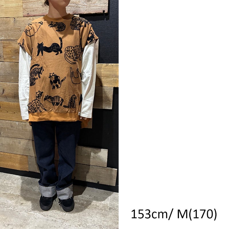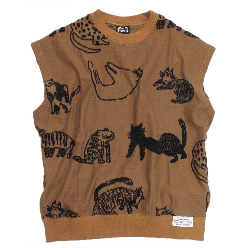 [ニードルワークス] CATフロッキージャガード天竺BIGベスト ブラウン