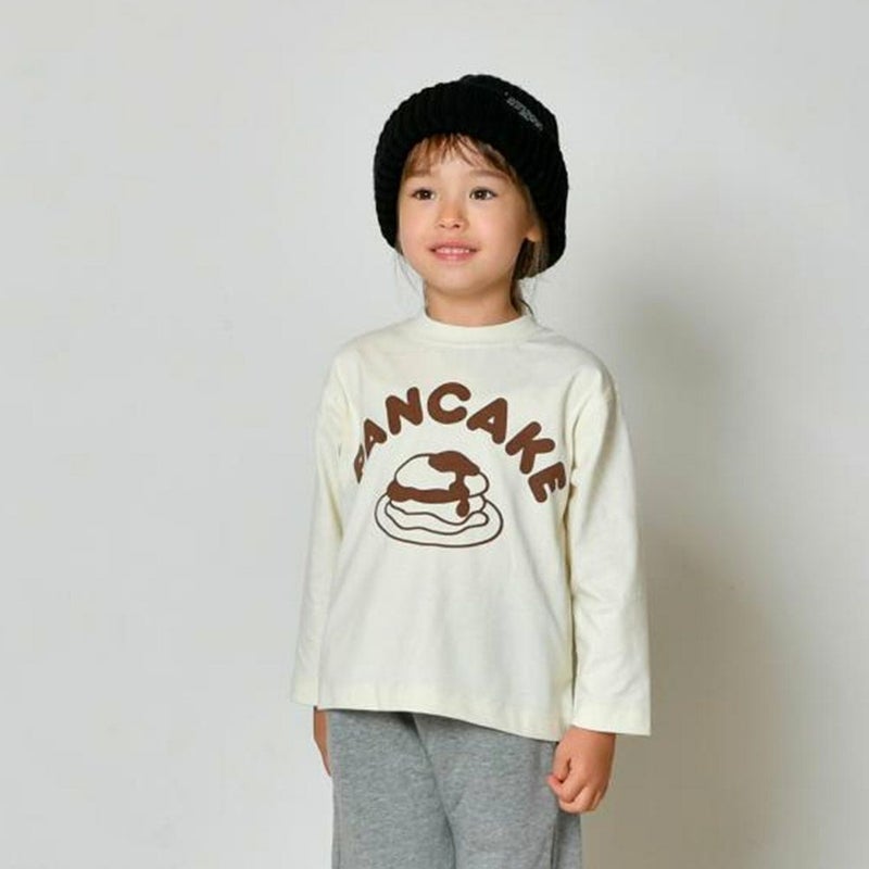 丸みのあるフォントのグラフィックと、パンケーキのイラストが抜け感を演出。