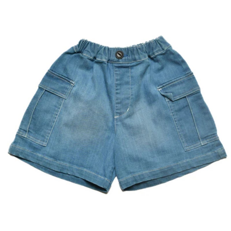 スーパーストレッチデニム素材を使用した、快適な履き心地のカーゴショートパンツ。