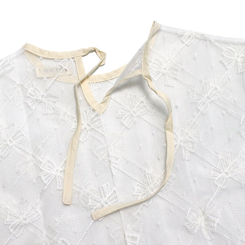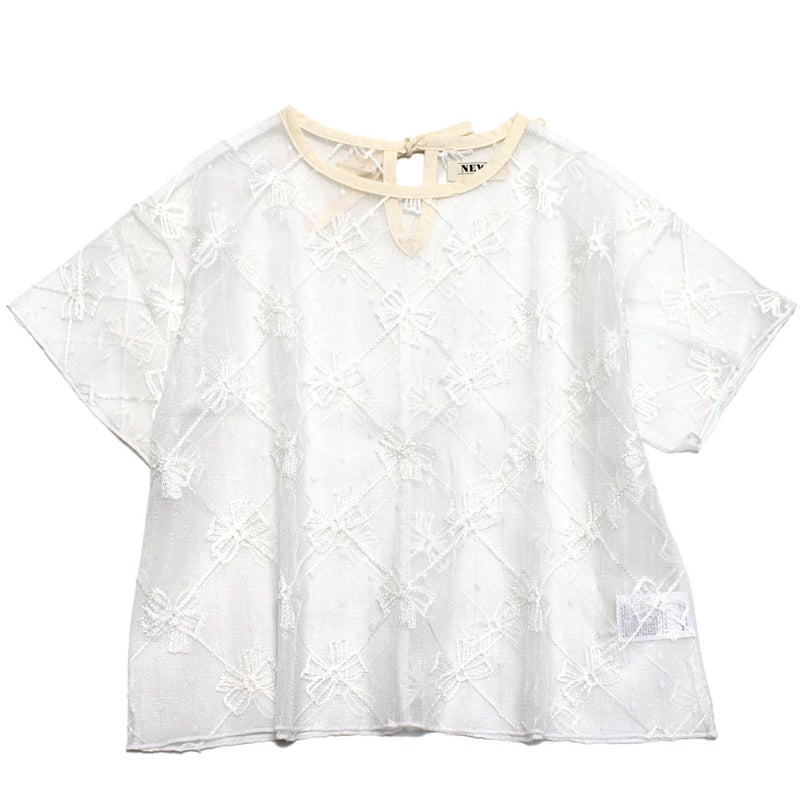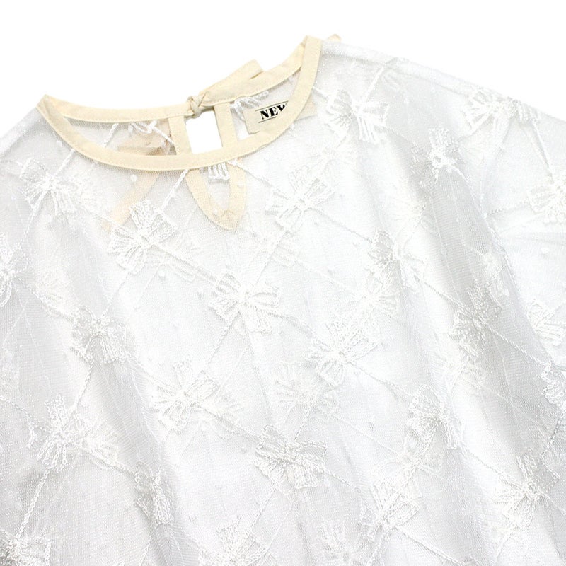 [ニードルワークス] 【NeWo】リボンメッシュプルオーバー アイボリー