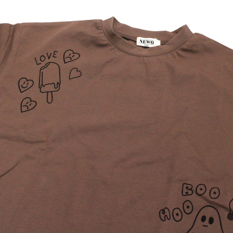遊び心のある落書きプリントが目を惹くTシャツ。