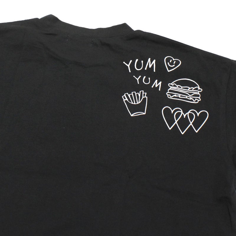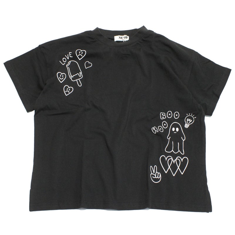 遊び心のある落書きプリントが目を惹くTシャツ。