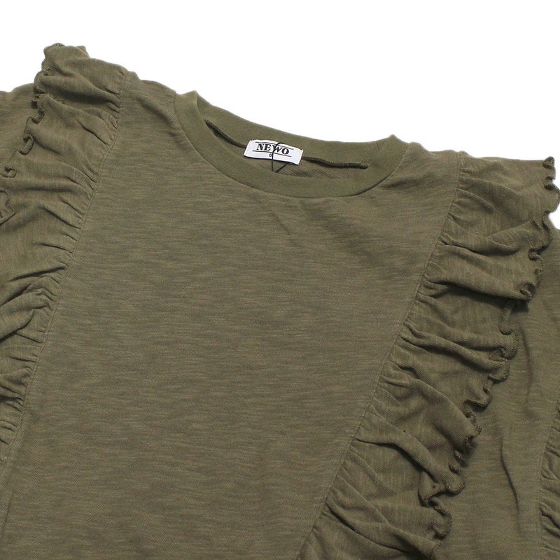 5. [ニードルワークス] 【NeWo】フリルTシャツ カーキ