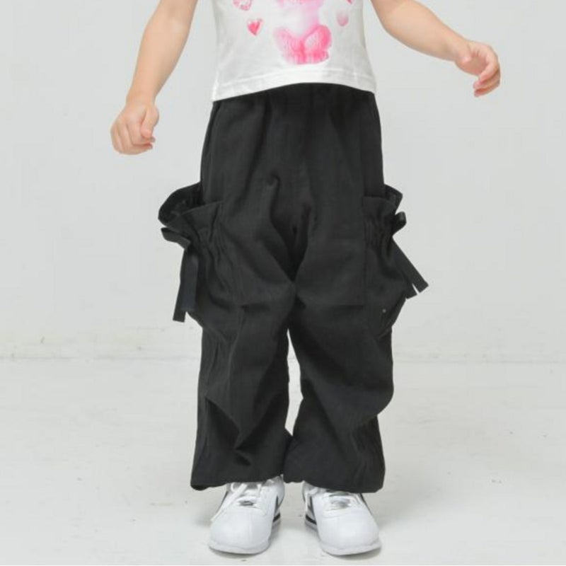 大きなリボンが付いたサイドポケットが特徴的なカーゴパンツ。