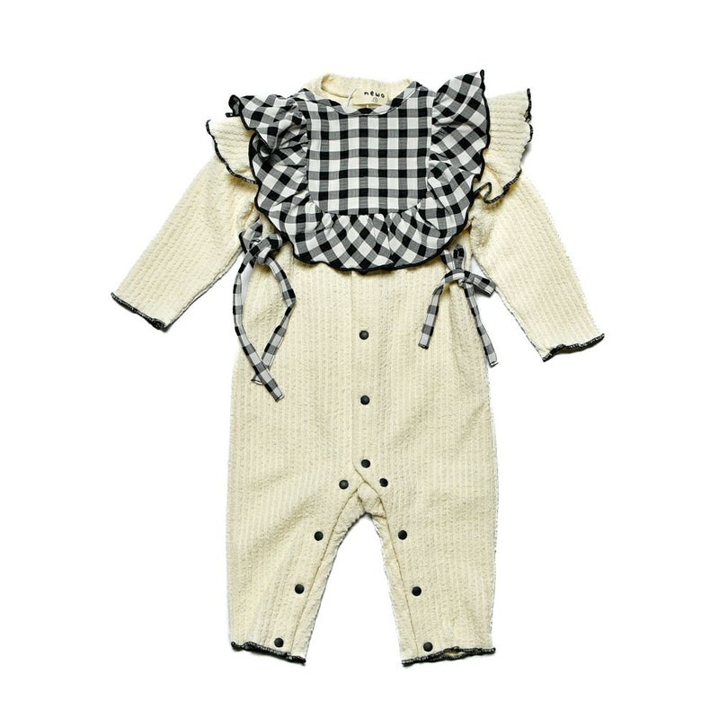 エプロンスタイとロンパースのセット。
