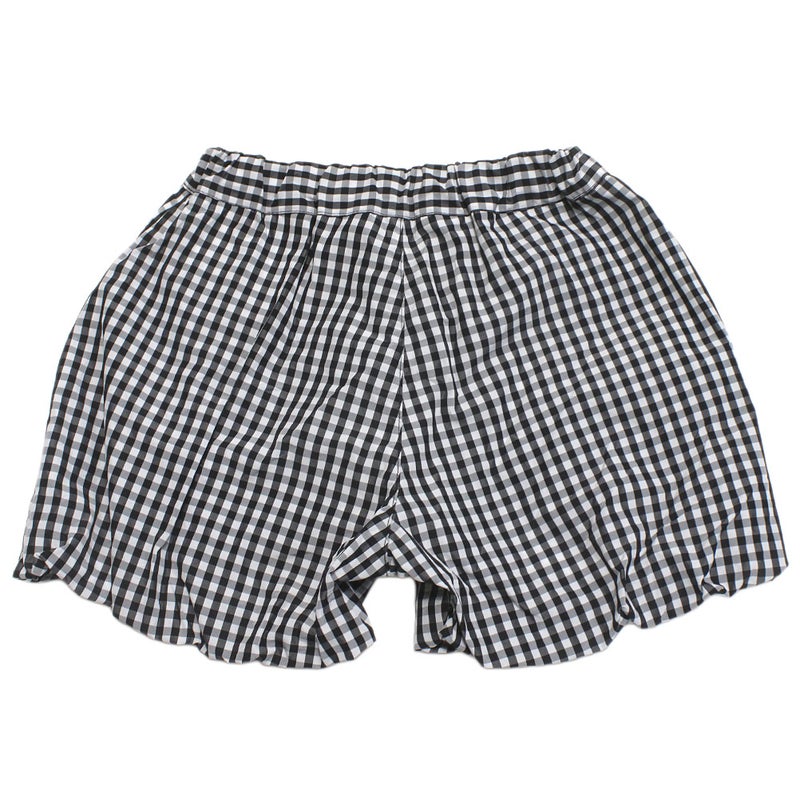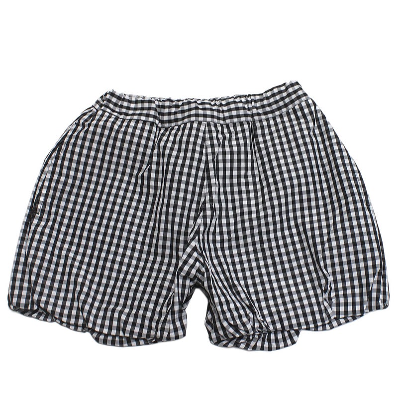 先染めチェックのバルーンパンツ。