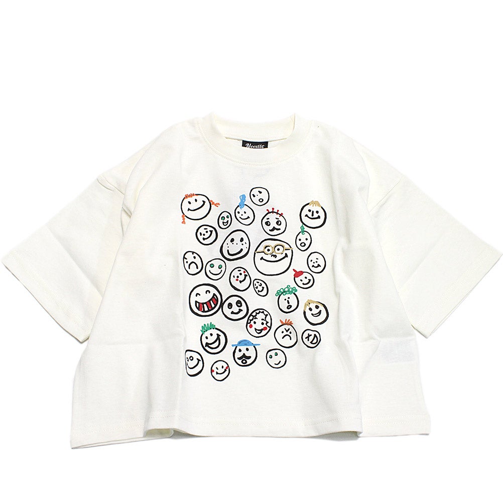 [ニードルワークス] スマイル柄ワイドTシャツ ホワイト