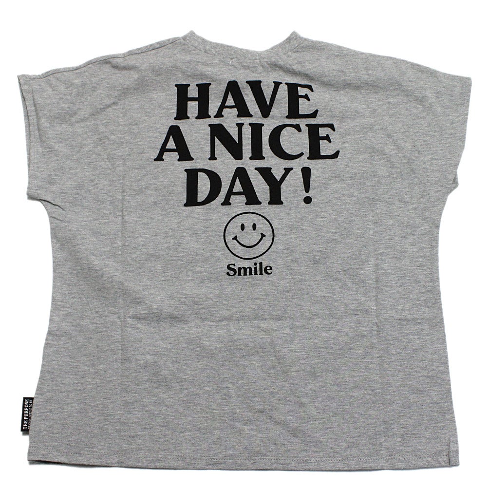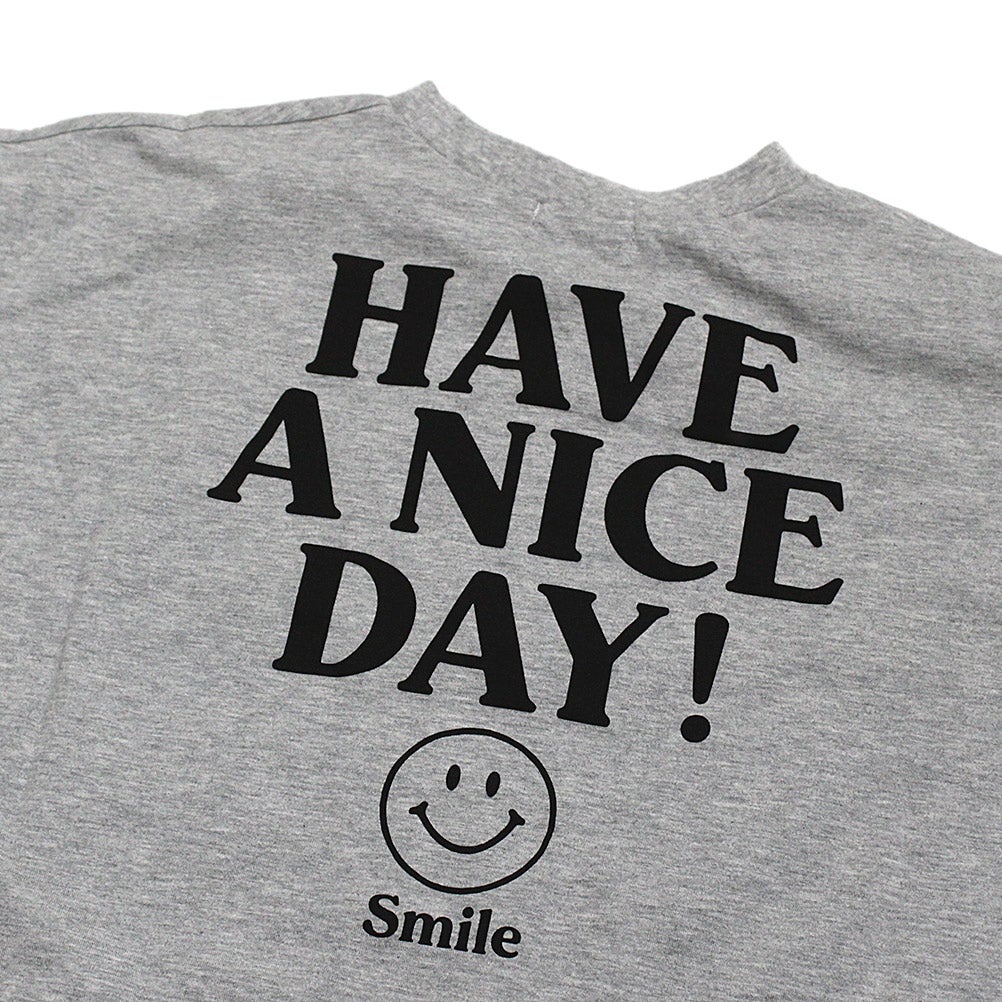 [ニードルワークス] スマイル柄ワイドTシャツ グレー