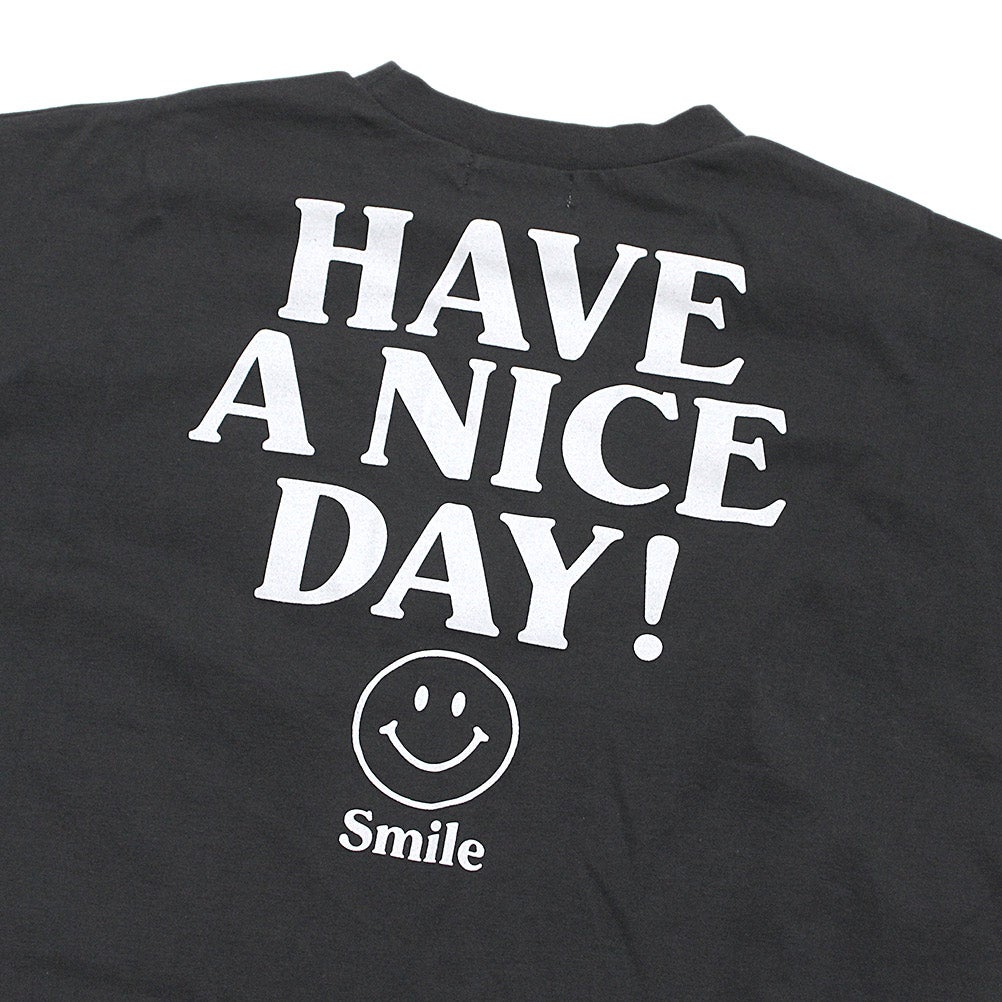 [ニードルワークス] スマイル柄ワイドTシャツ ブラック