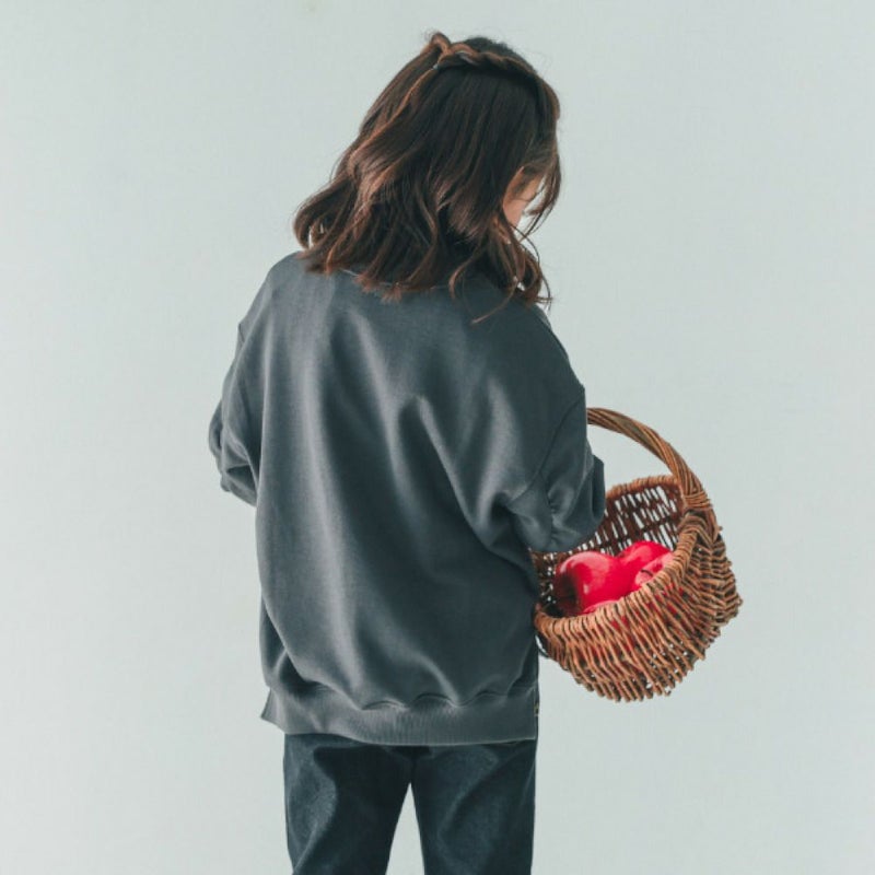 お袖にギャザーを入れた丸いシルエットのトレーナー。