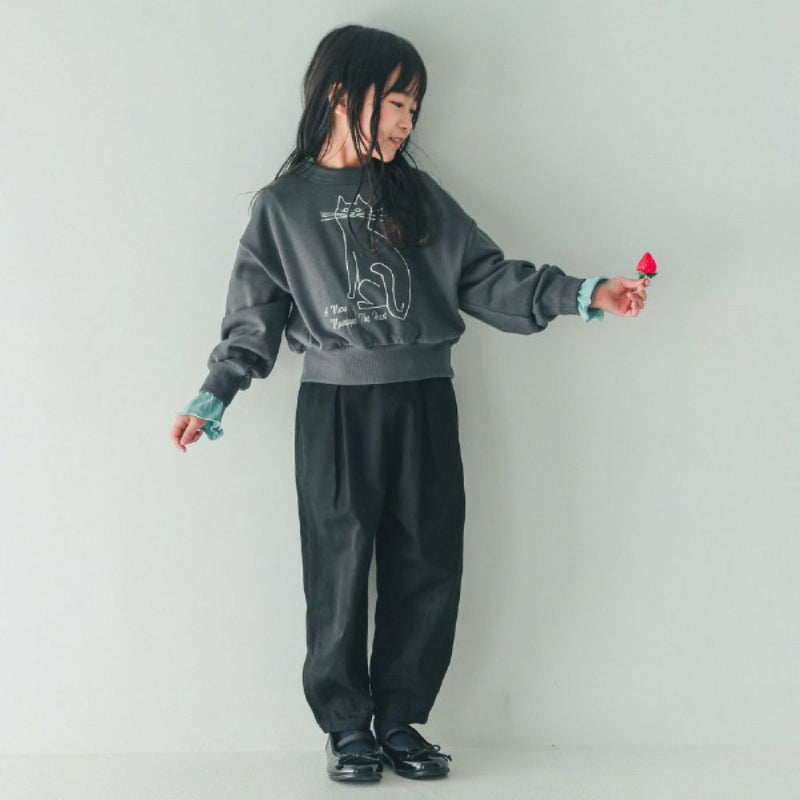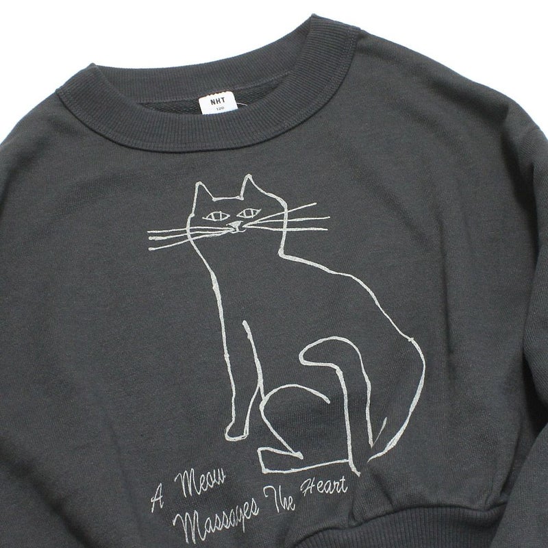 雰囲気のあるネコのプリントが目を惹くスウェット。