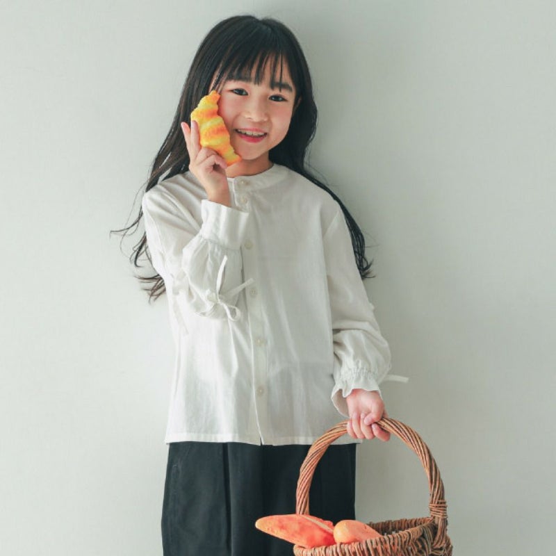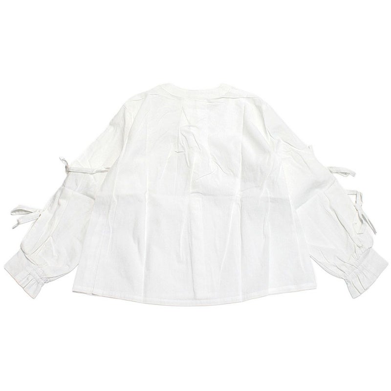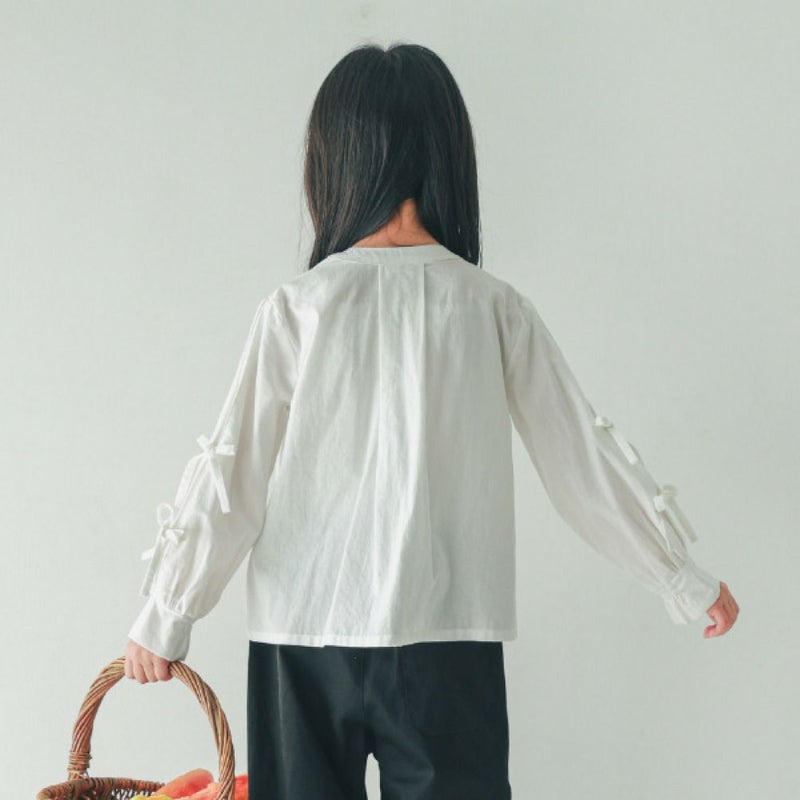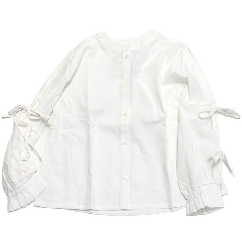 袖のリボンがガーリーな長袖シャツ。