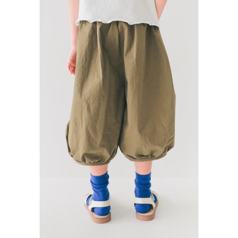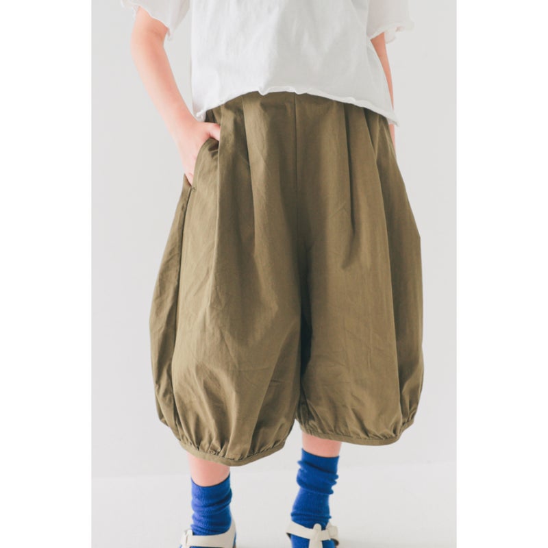 裾にギャザー入りでふんわり丸みのあるガウチョパンツ。