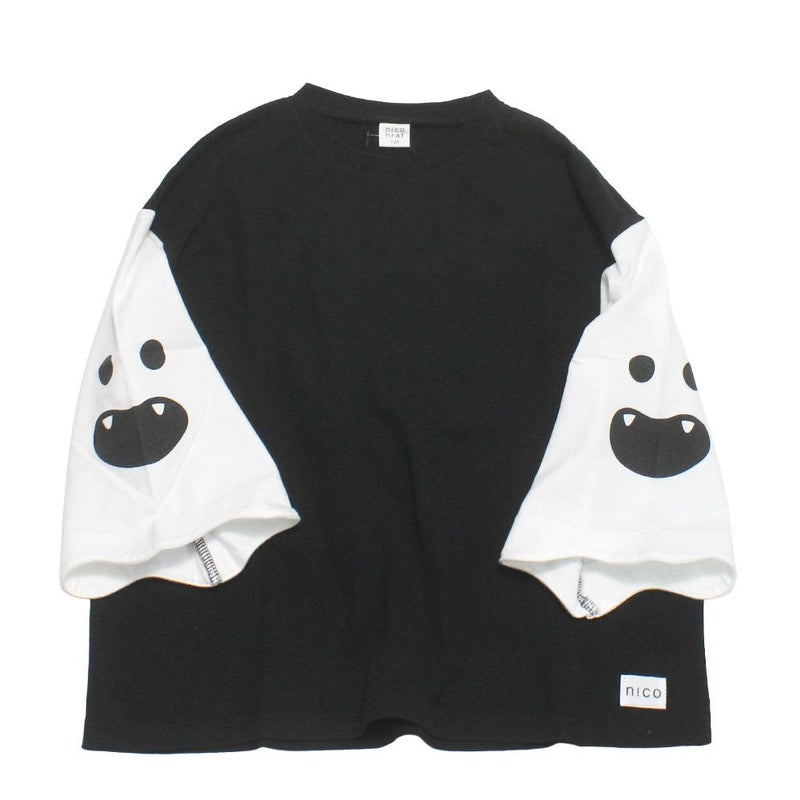 [ニコフラート] おばけ袖 ロングTシャツ ブラック(BK)