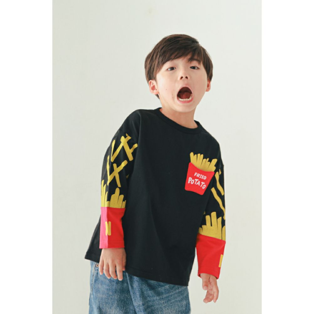 袖がフライドポテトになってるインパクト大なロングTシャツ。