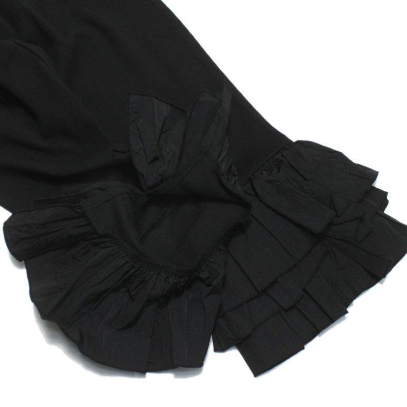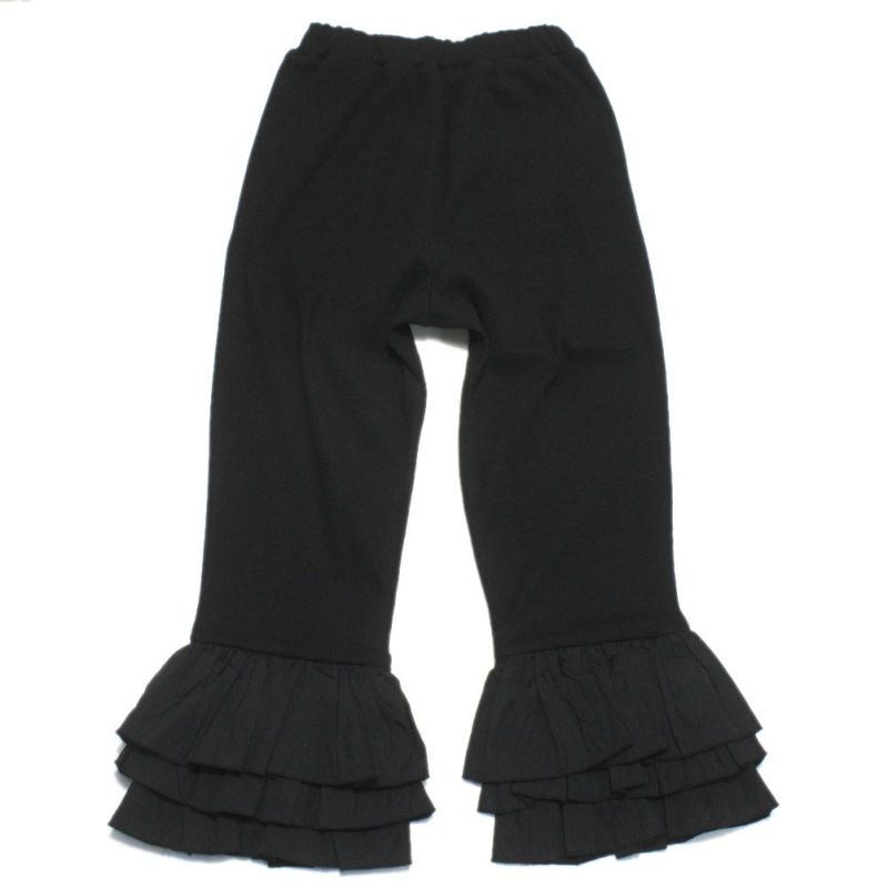 裾に量感のあるフリルが付いたリブパンツ。