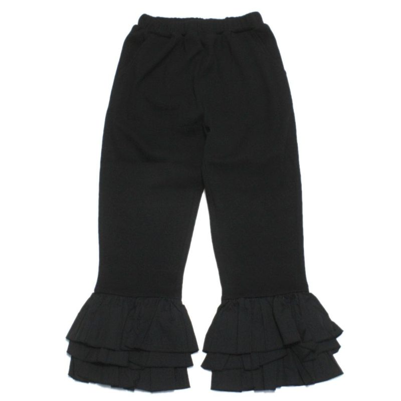 裾に量感のあるフリルが付いたリブパンツ。