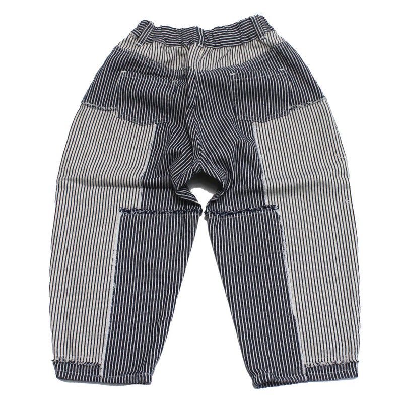 3. [ヌヌフォルム] ヒッコリーパッチワークパンツ ネイビー×ホワイト