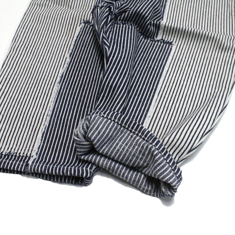 6. [ヌヌフォルム] ヒッコリーパッチワークパンツ ネイビー×ホワイト