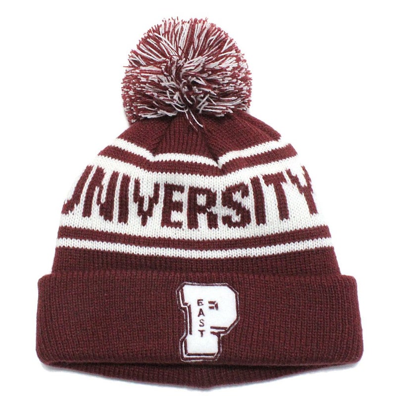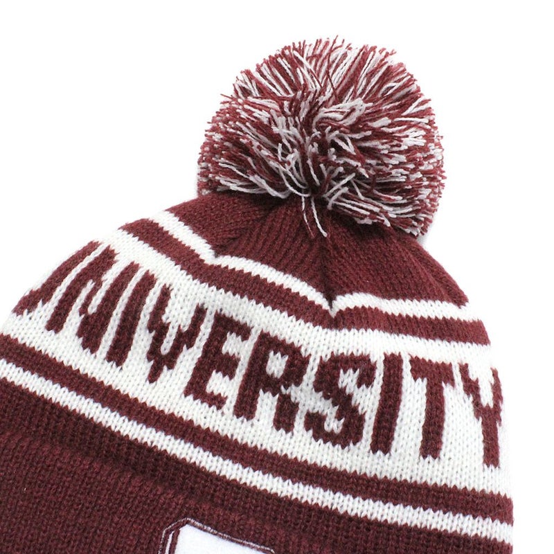 梵天付きのレタードニットキャプ。