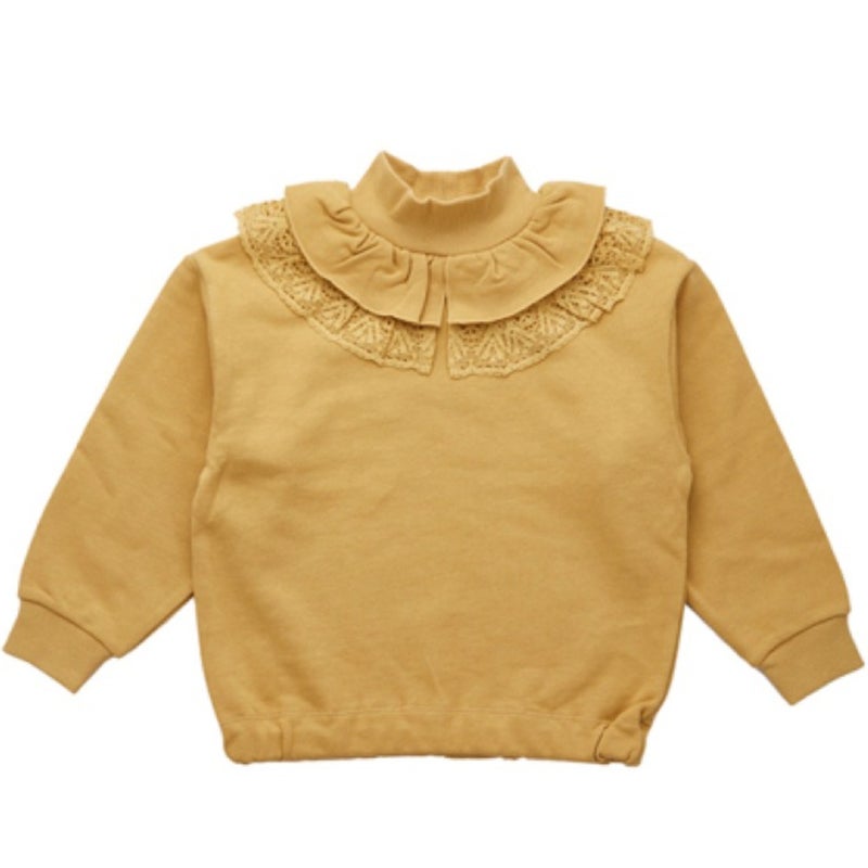 無駄のない無地スウェットにフリルをプラスしたデザインが特徴的。