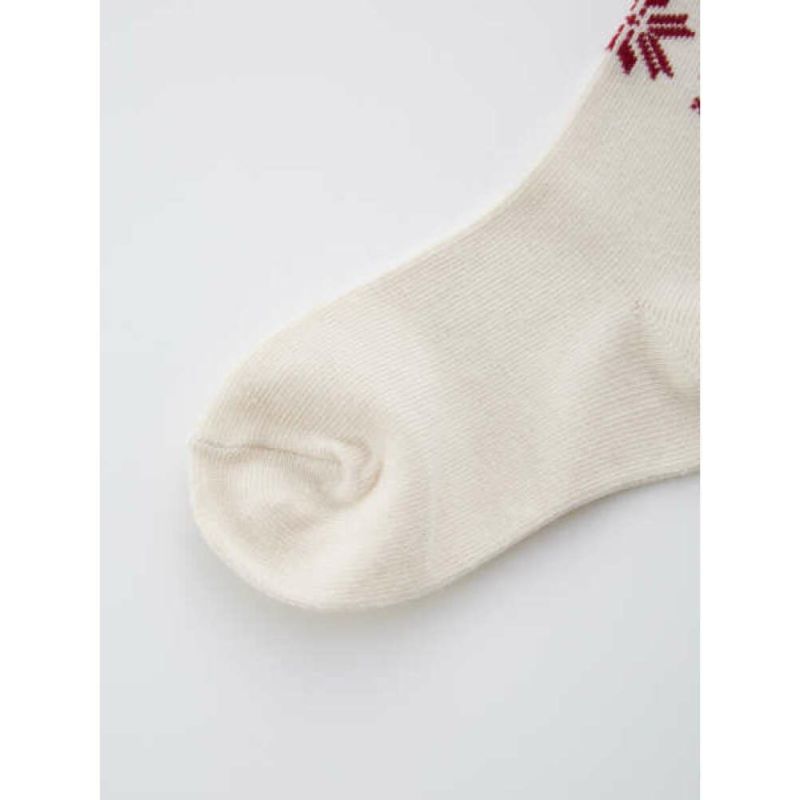 メロウデザイン、配色ボーダー、雪柄の3柄セットのクルーソックス。