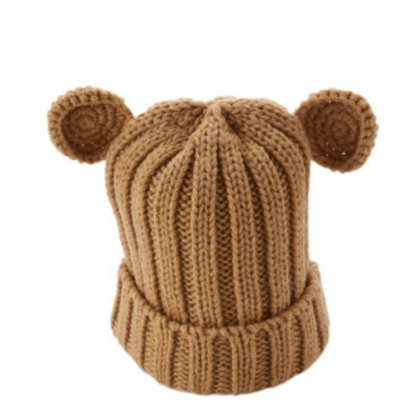 手編みの耳が可愛いベビーキャップ。