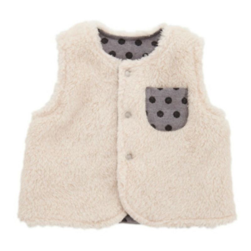 ボアとボーダー柄&ドット柄のリバーシブルのベビーベスト。