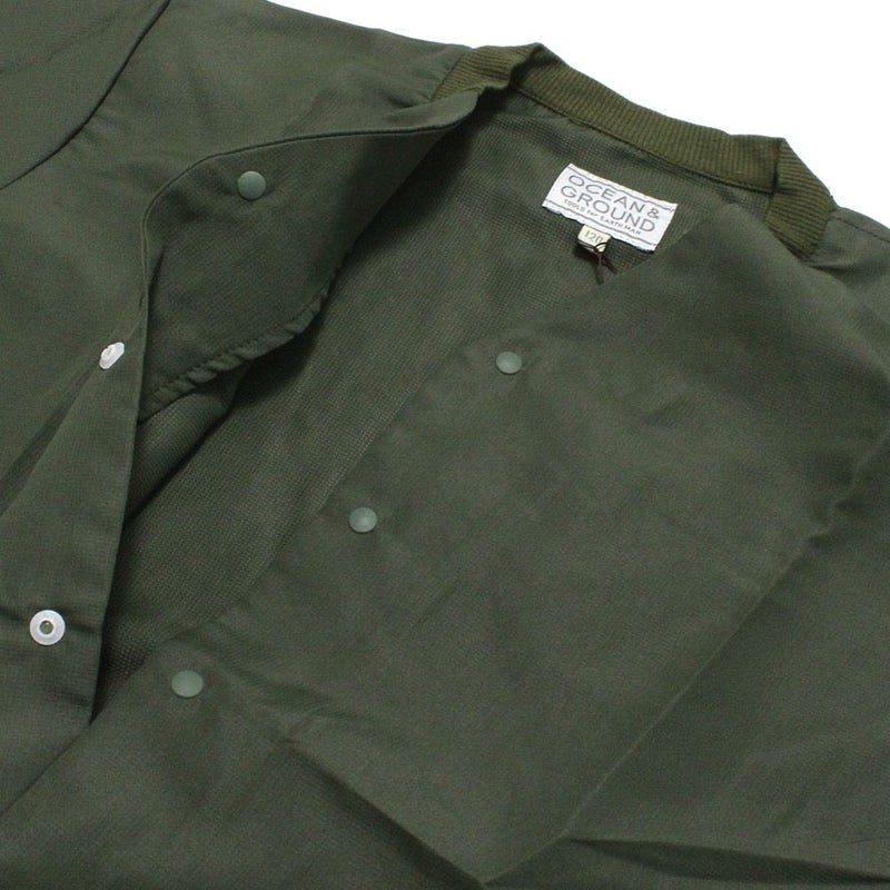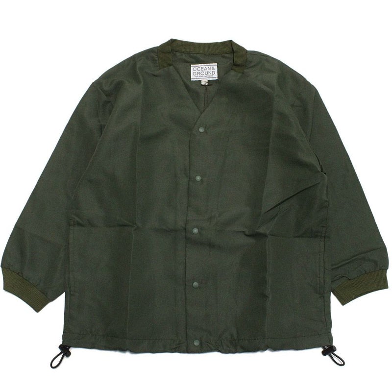 [オーシャン&グラウンド] ノーカラースナップカーディガン オリーブ(OL)